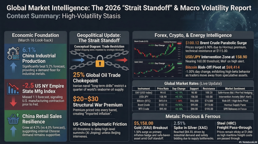 As of Wednesday, March 18, 2026, the global financial world is frozen in a “High-Volatility Stasis” as the Federal Reserve’s FOMC meeting reaches its conclusion. Markets are currently balancing a fragile recovery in Asian equities against a sharp spike in the USD/JPY (158.90), which is nearing the Japanese Ministry of Finance’s intervention threshold of 160.00. The defining macro-tension today is the contrast between easing geopolitical panic in the Gulf and the “Stagflationary Sticky” inflation data from the U.S. (CPI at 3.1%), which suggests that despite the energy shock, the Fed may deliver a “Hawkish Hold”. In India, the market is exhibiting a “Relief Bounce” after the Nifty 50 snapped a losing streak to close above 23,500, but institutional de-leveraging remains a headwind as FIIs continue to offload equities in favor of safe-haven Treasuries.