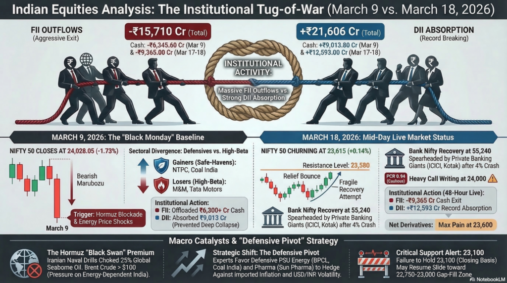 • Institutional Update (Mar 17-18): DIIs have absorbed a record ₹12,593 Cr in the last 48 hours to counter a ₹9,365 Cr FII exit.